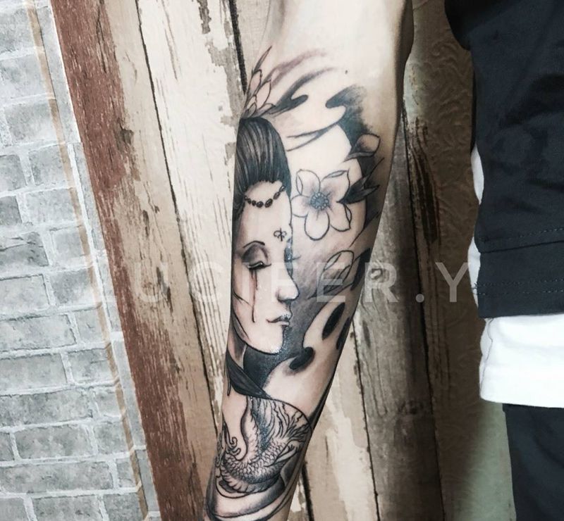 当前位置: 首页 >湖北省武汉市纹身店-炎刺青纹身图案>艺妓纹身图片_成品手臂传统人物纹身图案