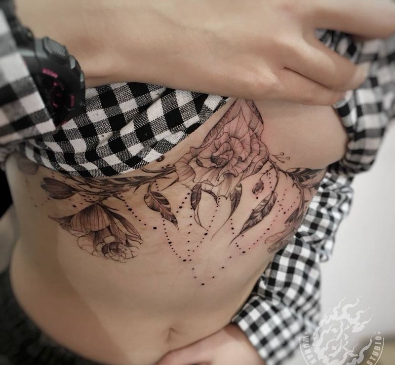 当前位置: 首页 >湖北省武汉市纹身店-炎刺青纹身图案>花纹身图片_胸部腹部点刺几何纹身图案