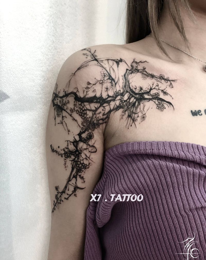 • 纹身吧推荐的披肩图腾半胛纹身图案作品展示