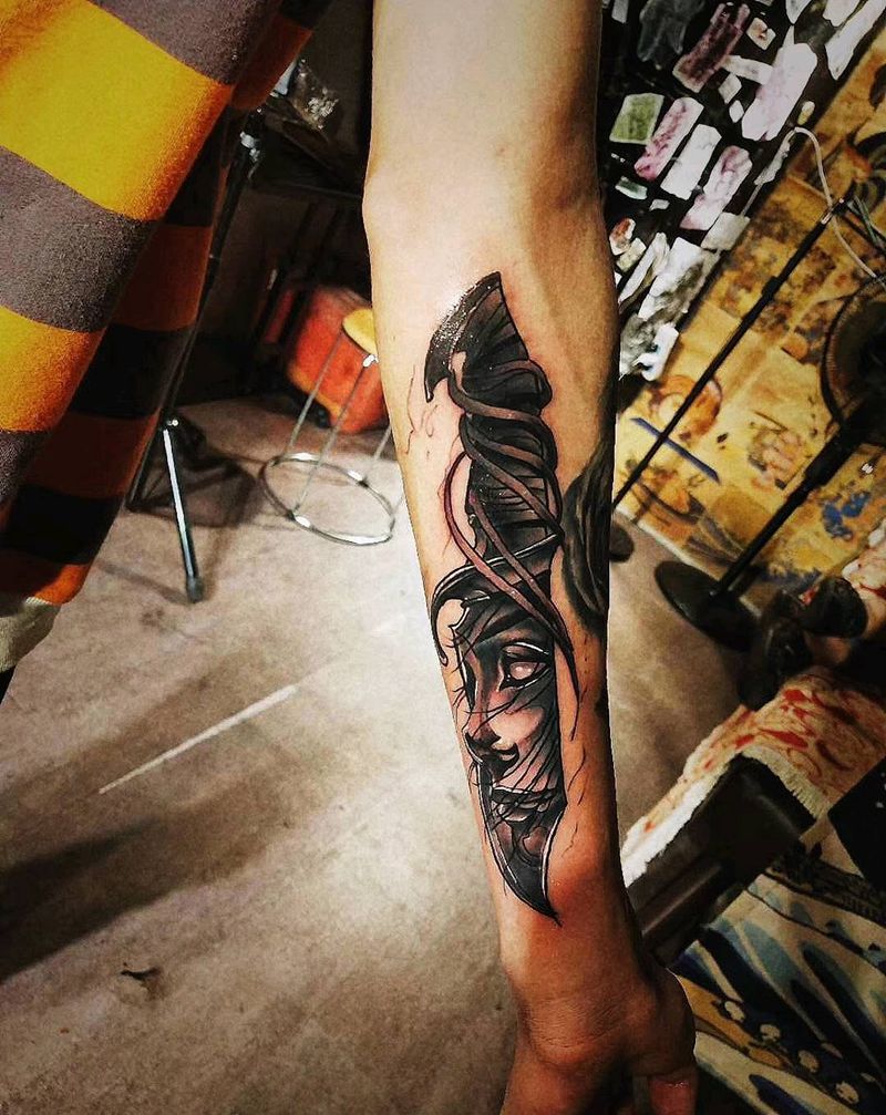 欧美刀纹身图片_手臂欧美写实纹身图案