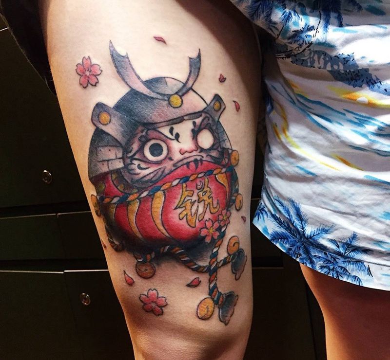 当前位置: 首页 >湖北省武汉市纹身店-Liberator Tattoo纹身图案>原创武士达摩蛋纹身图片_腿部New School纹身图案