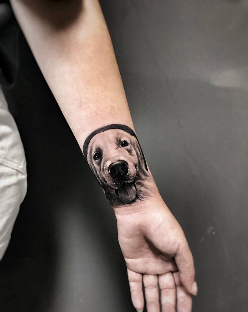小金毛纹身图片_成品手臂手部欧美写实动物武汉纹艺刺刻纹申坤纹身图案
