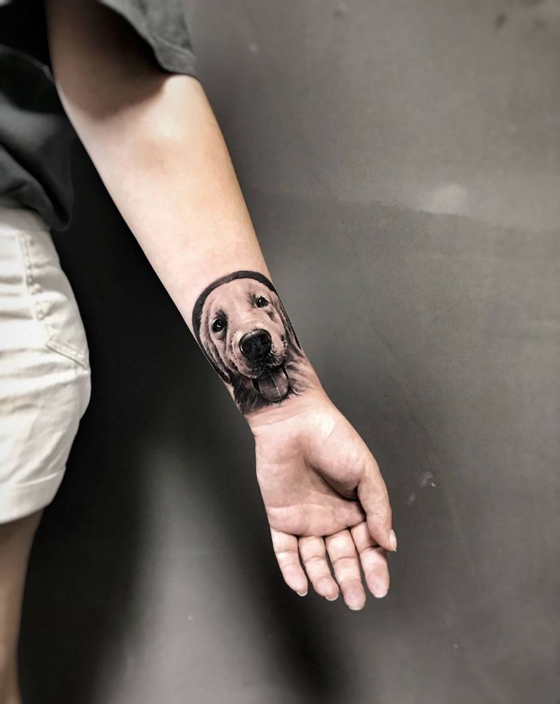 当前位置: 首页 >湖北省武汉市纹身店-纹艺刺刻纹身馆纹身图案>小金毛纹身图片_成品手臂手部欧美写实动物武汉纹艺刺刻纹申坤纹身图案