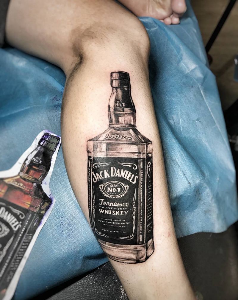 杰克丹尼纹身图片_成品腿部脚部欧美写实静物纹艺刺刻纹申坤武汉纹身图案