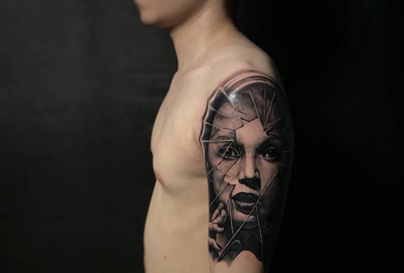 当前位置: 首页 >湖北省武汉市纹身店-纹艺刺刻纹身馆纹身图案>凝视纹身图片_成品手臂手部欧美写实肖像人物武汉纹艺刺刻纹申坤纹身图案