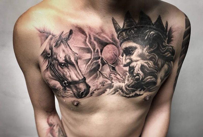 马纹身图片_成品胸部欧美写实动物鬼神原创武汉纹艺刺刻纹申坤纹身图案