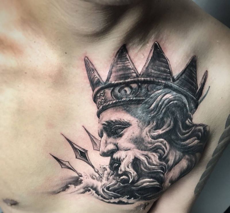 波塞冬 遮盖纹身图片_成品胸部肩部欧美写实原创宗教武汉纹艺刺刻纹申坤纹身图案