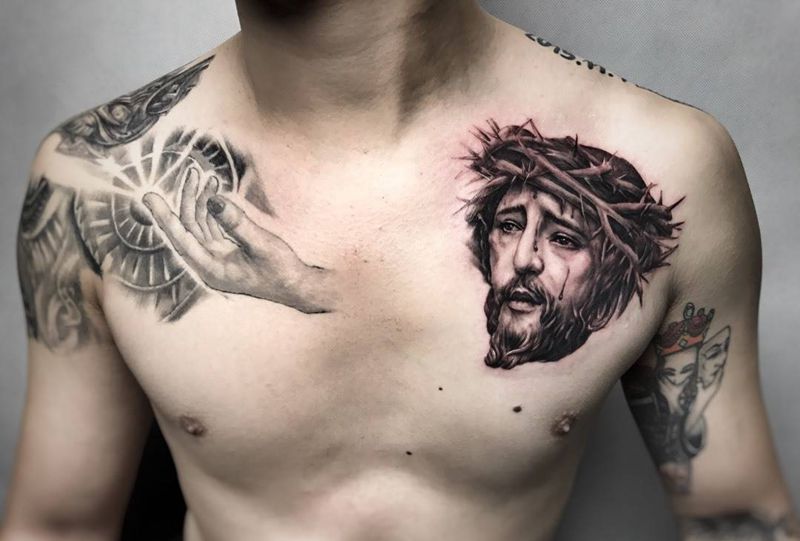 耶和华纹身图片_成品胸部欧美写实人物宗教原创武汉纹艺刺刻纹申坤纹身图案