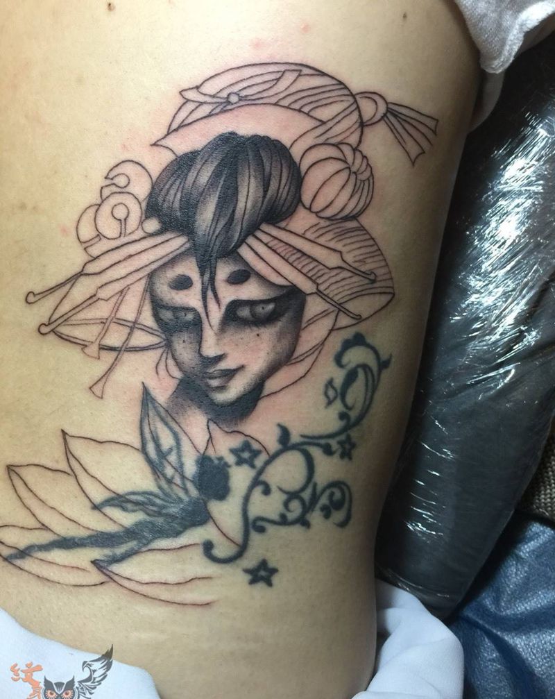 当前位置: 首页 >湖北省武汉市纹身店-纹艺刺刻纹身馆纹身图案>艺妓纹身图片