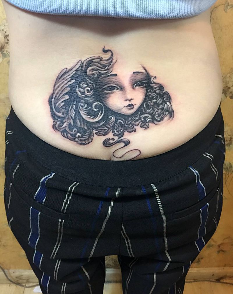 • 时尚性感的腹部莲花纹身图案