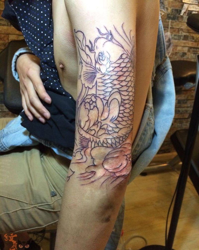 传统鲤鱼遮盖伤疤…纹身图片_成品手部传统动物纹身图案
