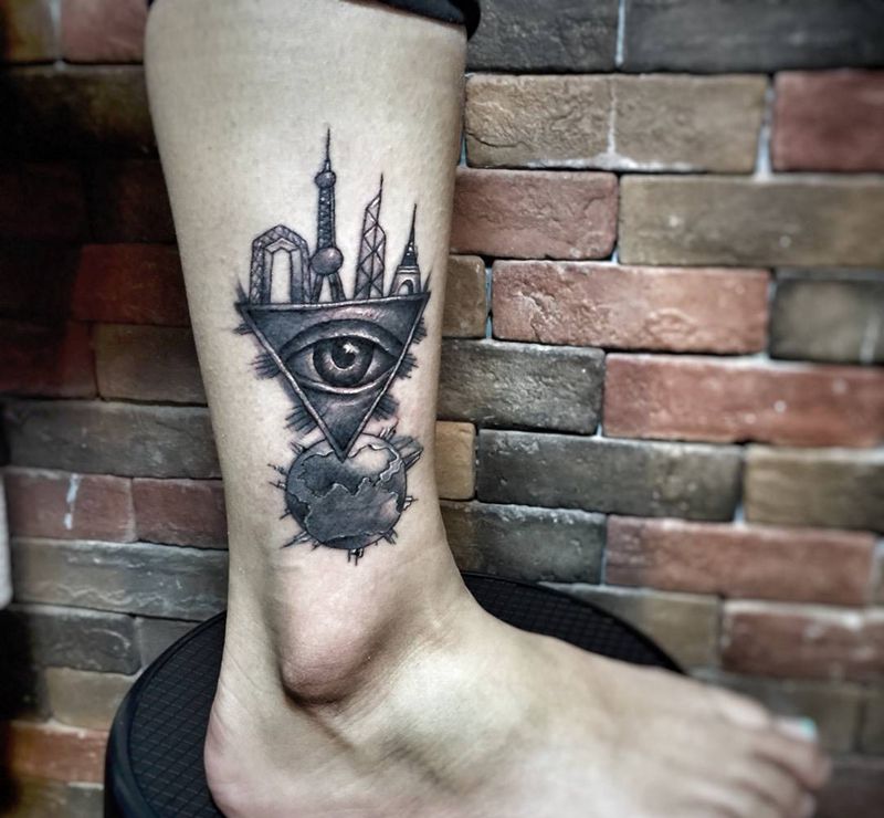 放眼看世界纹身图片_成品脚部欧美纹身图案