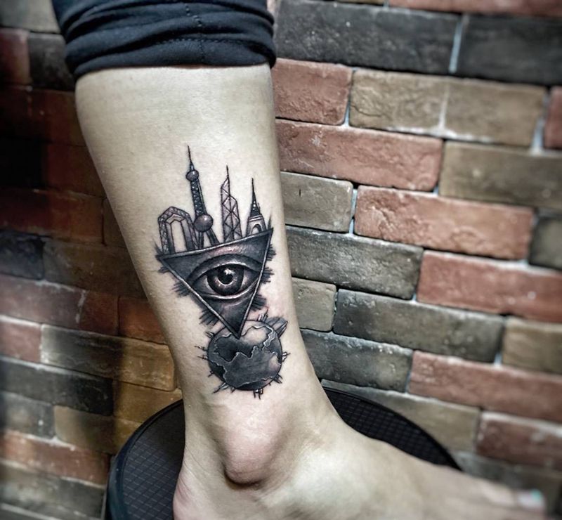 放眼看世界纹身图片_成品脚部欧美纹身图案
