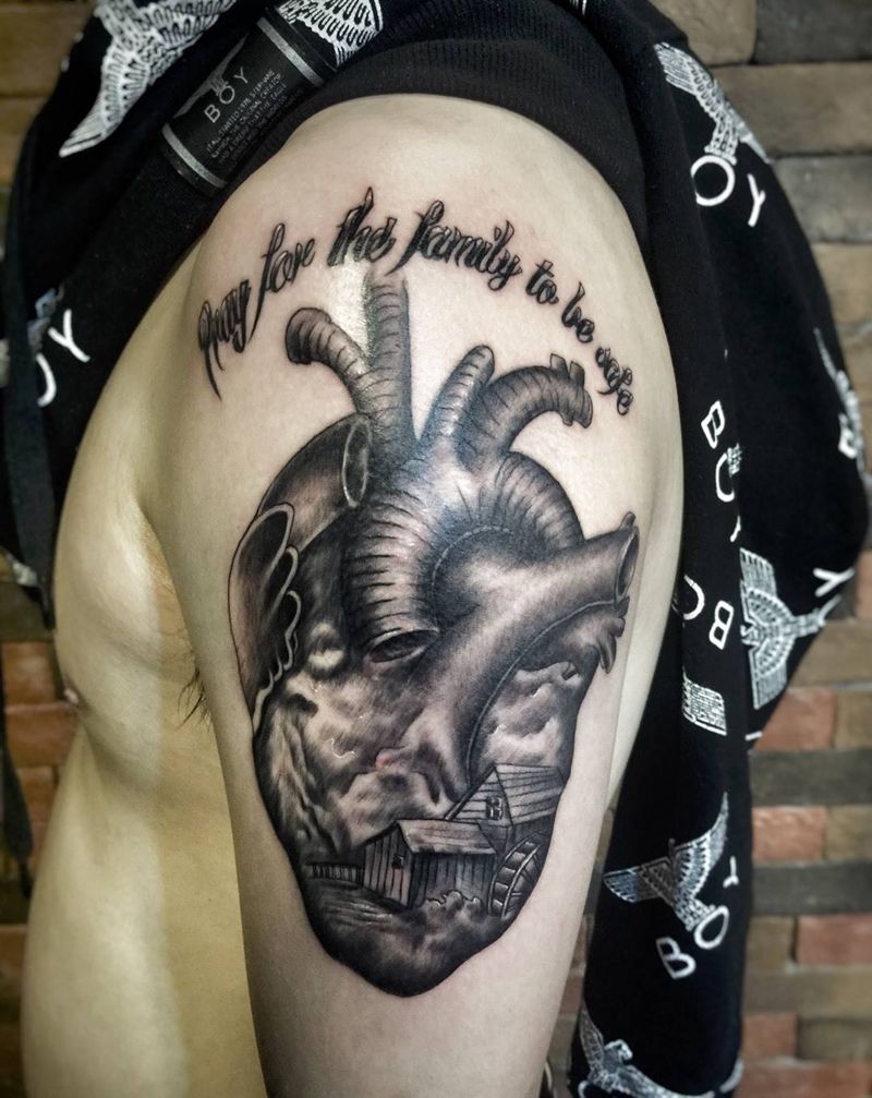 心里有个家纹身图片_成品手臂欧美原创手稿纹身图案