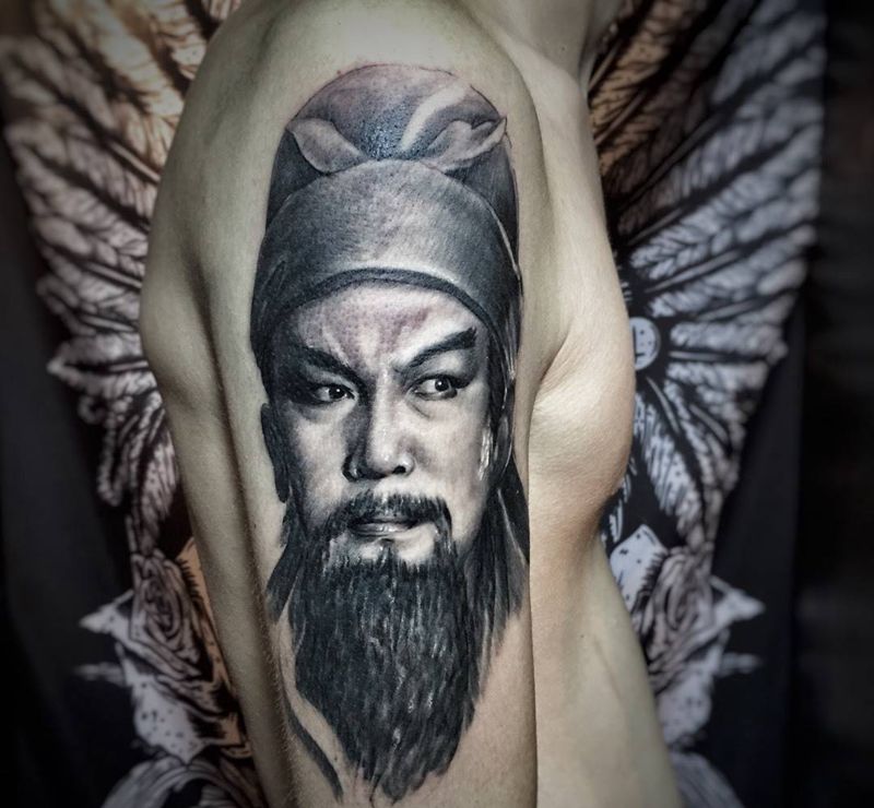 关羽,耗时3小时纹身图片_成品手臂肖像人物纹身图案