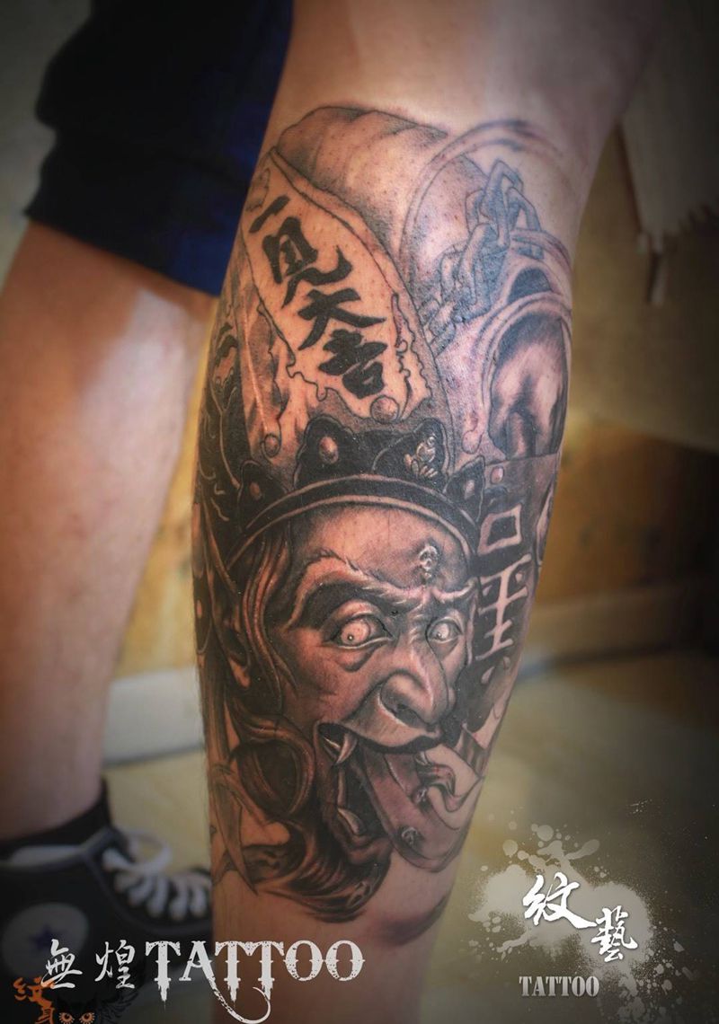 当前位置: 首页 >湖北省武汉市纹身店-纹艺刺刻纹身馆纹身图案>白无常纹身图片_成品腿部传统人物纹身图案
