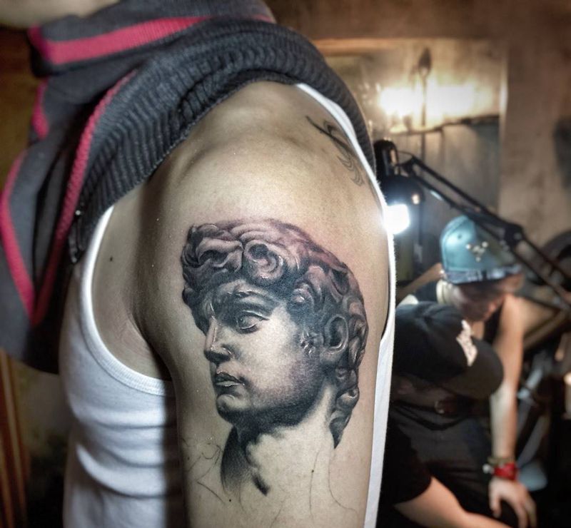 大卫,未完待续纹身图片_成品手臂欧美人物纹身图案