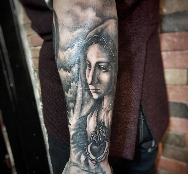 圣母2纹身图片_成品手臂欧美人物纹身图案
