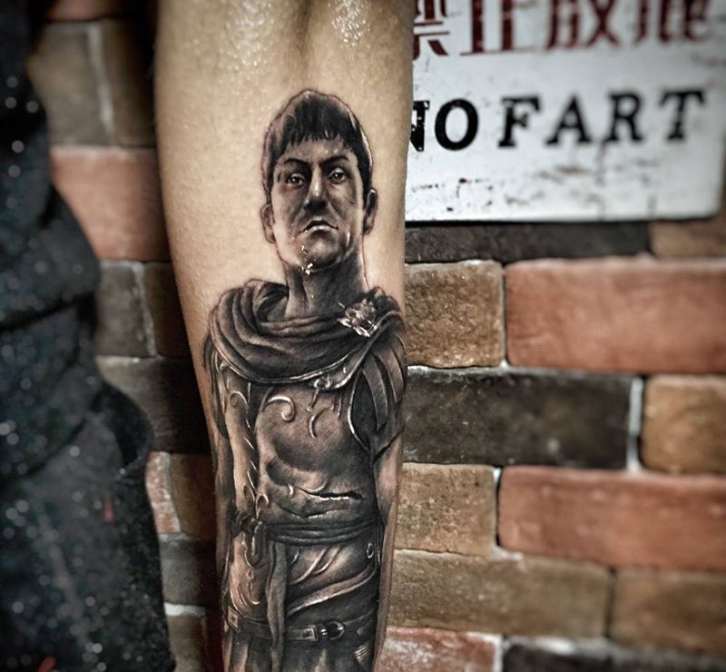 罗马战士…纹身图片_成品手臂欧美人物纹身图案