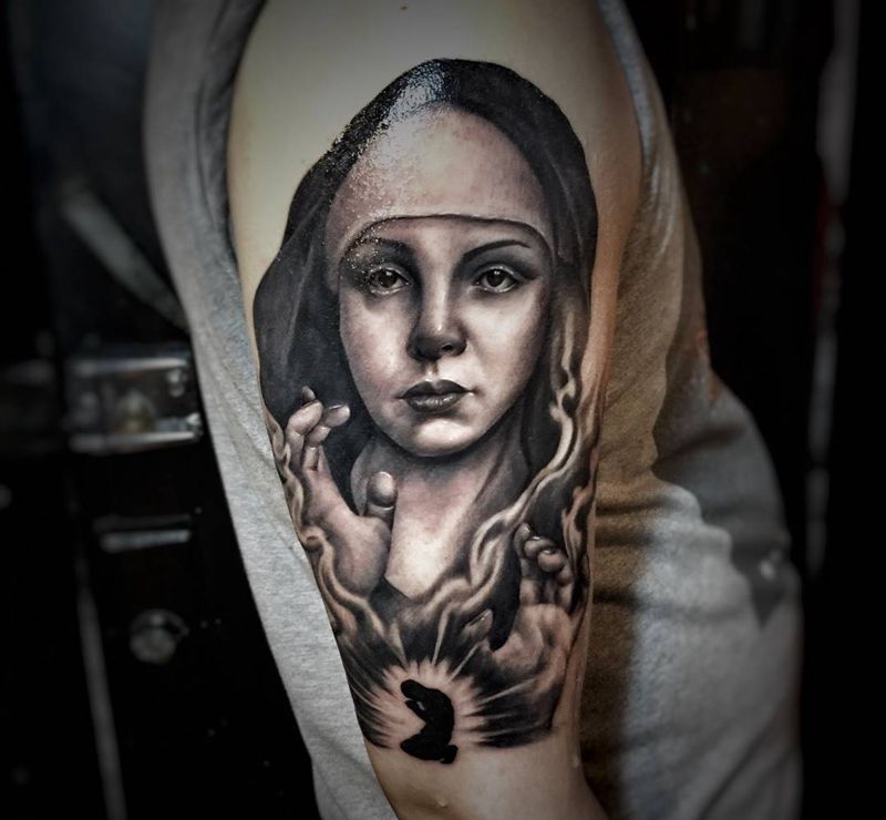 聆听纹身图片_手臂欧美人物宗教纹身图案