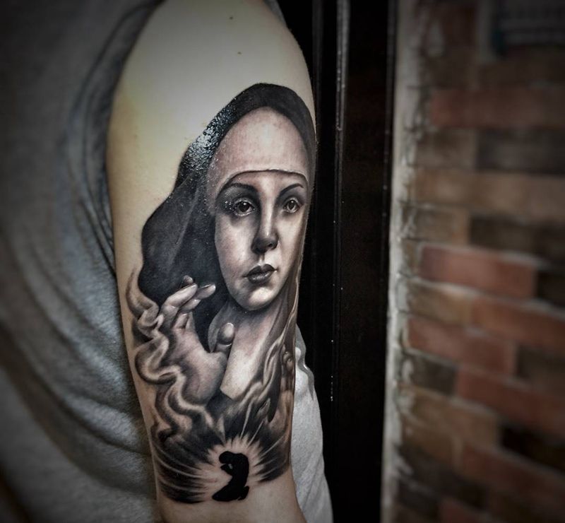 聆听纹身图片_手臂欧美人物宗教纹身图案