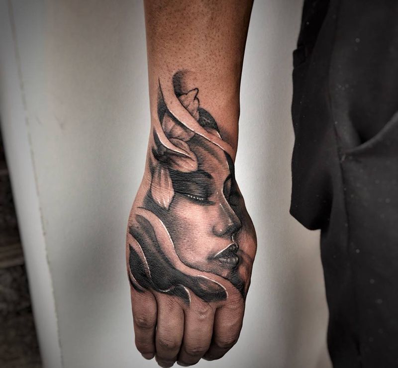 睡美人纹身图片_成品手部欧美人物纹身图案