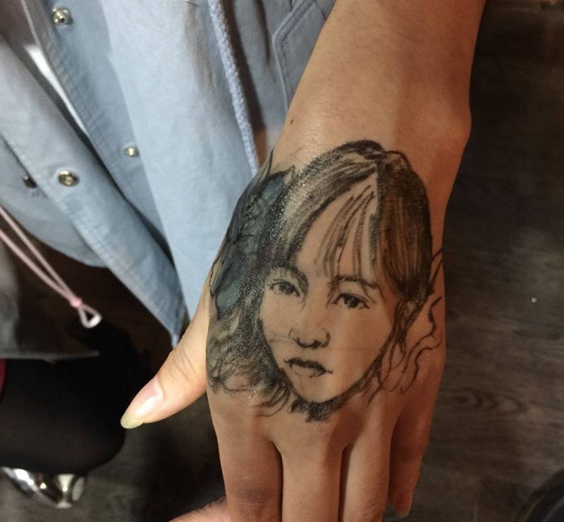 当前位置: 首页 >湖北省武汉市纹身店-纹艺刺刻纹身馆纹身图案>手面遮盖纹身图片_成品手部肖像欧美写实人物原创纹身图案