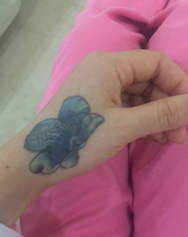 • 手背潮流时尚的玫瑰花眼睛纹身图案