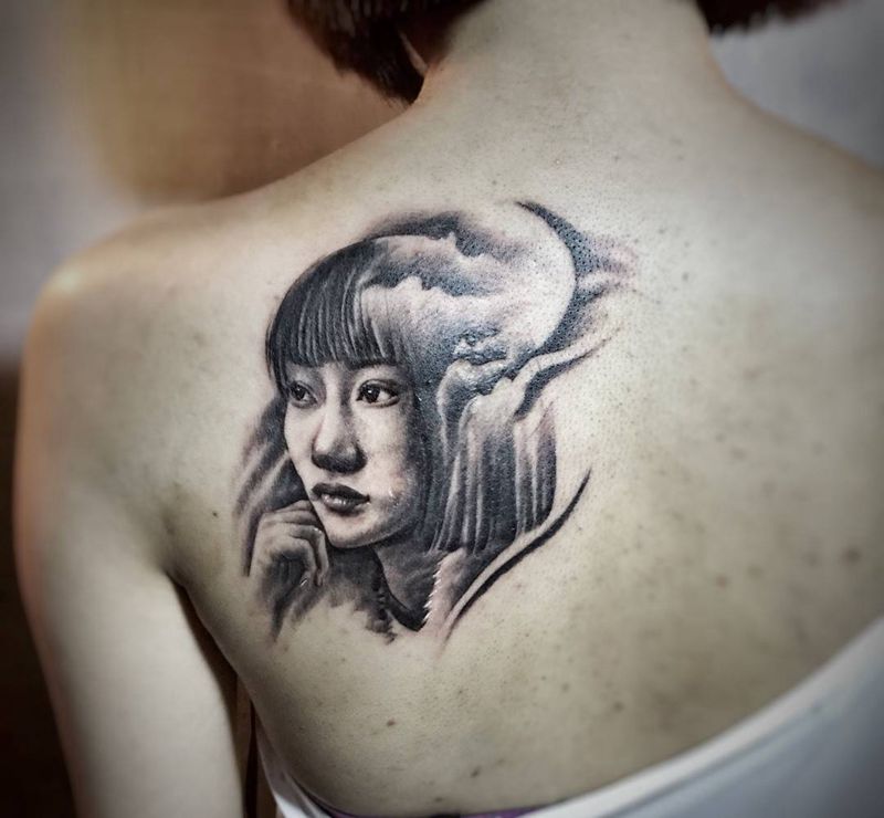 当前位置: 首页 >湖北省武汉市纹身店-纹艺刺刻纹身馆纹身图案>肖像一枚纹身图片_成品背部肖像人物纹身图案