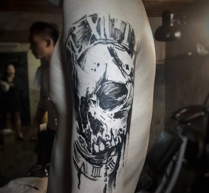 当前位置: 首页 >湖北省武汉市纹身店-纹艺刺刻纹身馆纹身图案>手臂骷髅纹身图片_成品手臂欧美鬼神人物宗教写实纹身图案