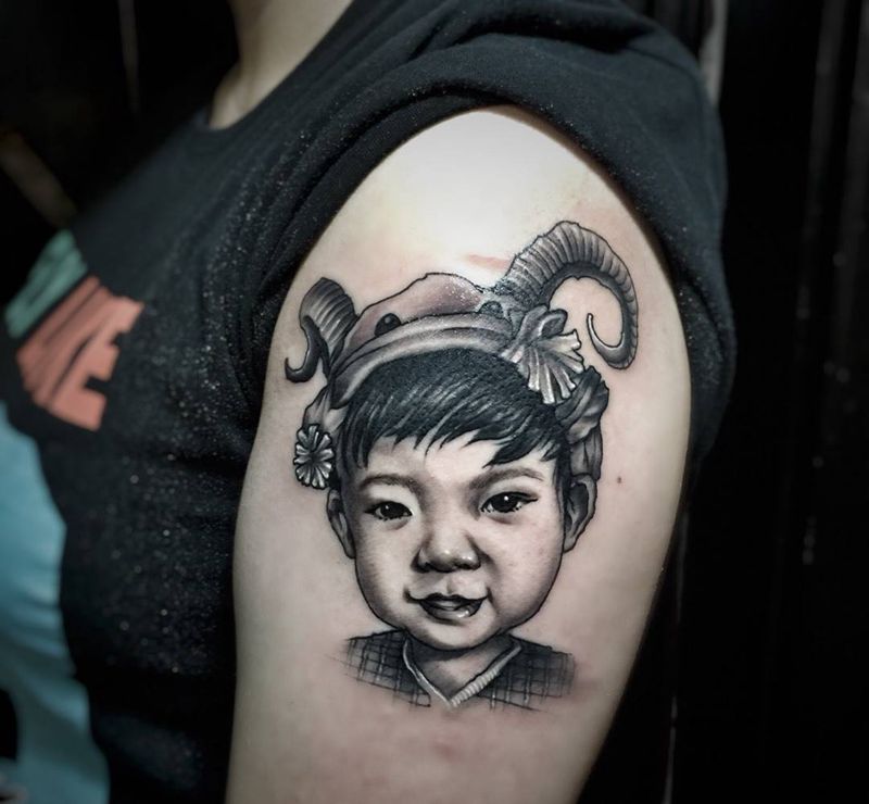 当前位置: 首页 >湖北省武汉市纹身店-纹艺刺刻纹身馆纹身图案>手绘肖像完成纹身图片_成品手臂肖像人物原创纹身图案
