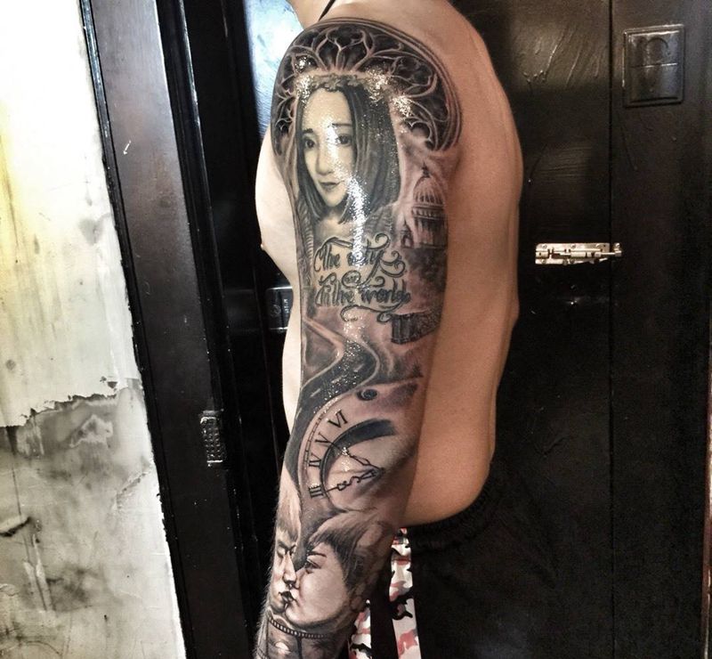 当前位置: 首页 >湖北省武汉市纹身店-纹艺刺刻纹身馆纹身图案>旅程……花臂纹身图片_成品手臂手部欧美肖像写实人物原创情侣纹身图案