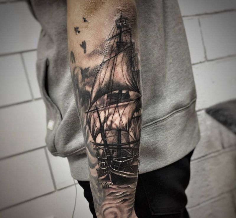 当前位置: 首页 >湖北省武汉市纹身店-纹艺刺刻纹身馆纹身图案>船纹身图片_成品手臂手部欧美写实静物纹身图案