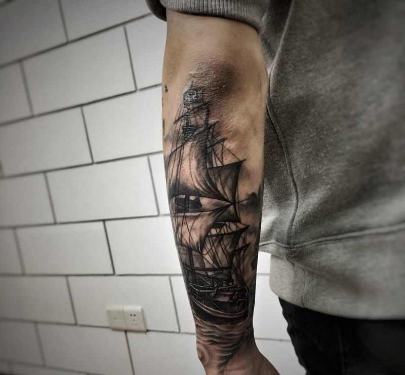当前位置: 首页 >湖北省武汉市纹身店-纹艺刺刻纹身馆纹身图案>船纹身图片_成品手臂手部欧美写实静物纹身图案