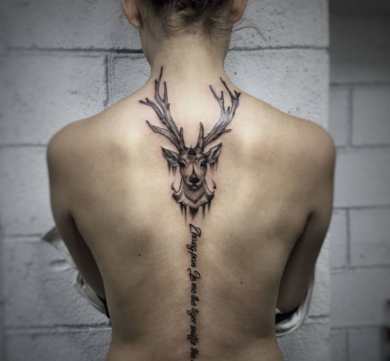 小图一枚纹身图片_成品背部欧美动物纹身图案