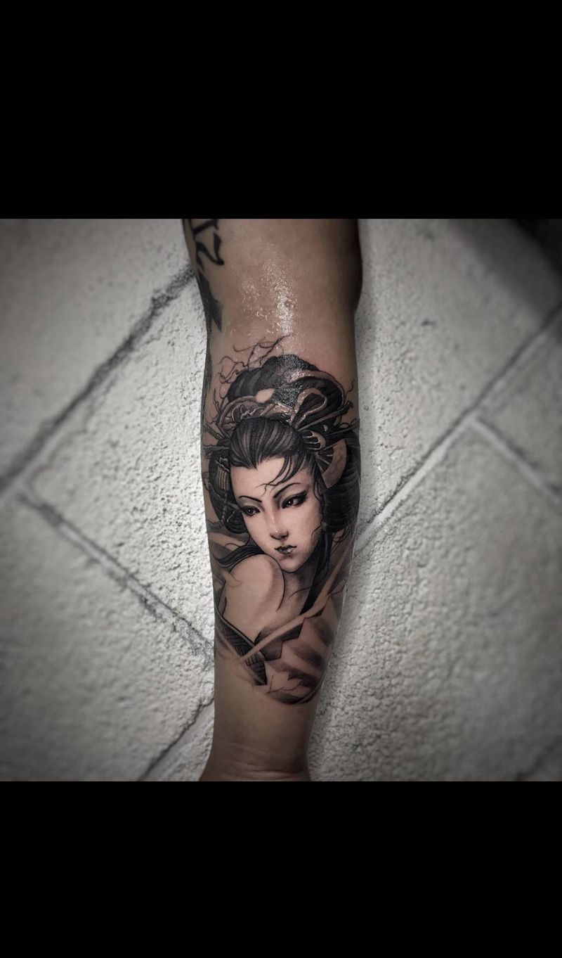 当前位置: 首页 >湖北省武汉市纹身店-纹艺刺刻纹身馆纹身图案>艺妓…纹身图片_成品手臂手部写实肖像传统人物原创宗教纹身图案