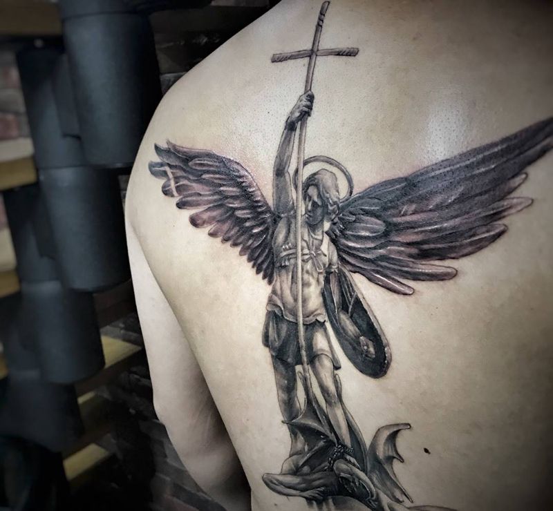炽天使纹身图片_成品背部欧美写实鬼神原创宗教武汉纹艺刺刻纹申坤纹身图案