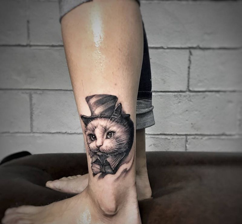 当前位置: 首页 >湖北省武汉市纹身店-纹艺刺刻纹身馆纹身图案>绅士猫纹身图片_脚部腿部欧美写实肖像动物原创纹身图案