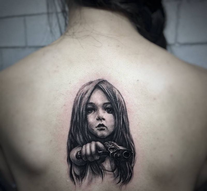 堕落天使,未完待续纹身图片_成品背部肩部欧美写实肖像人物宗教纹身图案