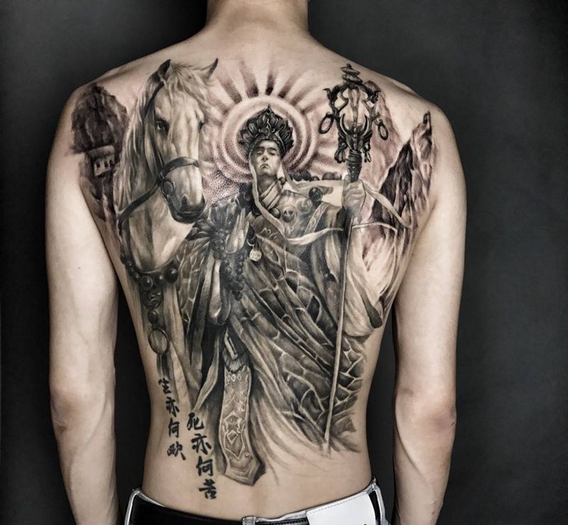 取经人纹身图片_成品背部腰部写实传统人物宗教武汉纹艺刺刻纹申坤纹身图案