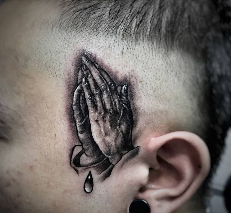 迷你祈祷之手纹身图片_成品欧美写实人物武汉纹艺刺刻纹申坤纹身图案