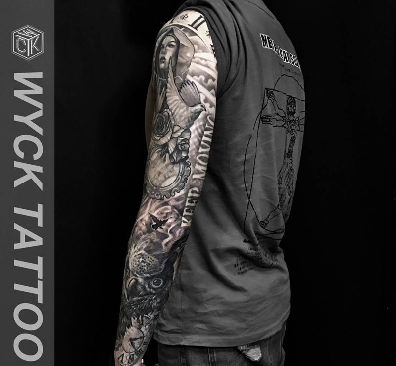花臂完纹身图片_成品手臂手部欧美写实肖像人物原创武汉纹艺刺刻纹身图案