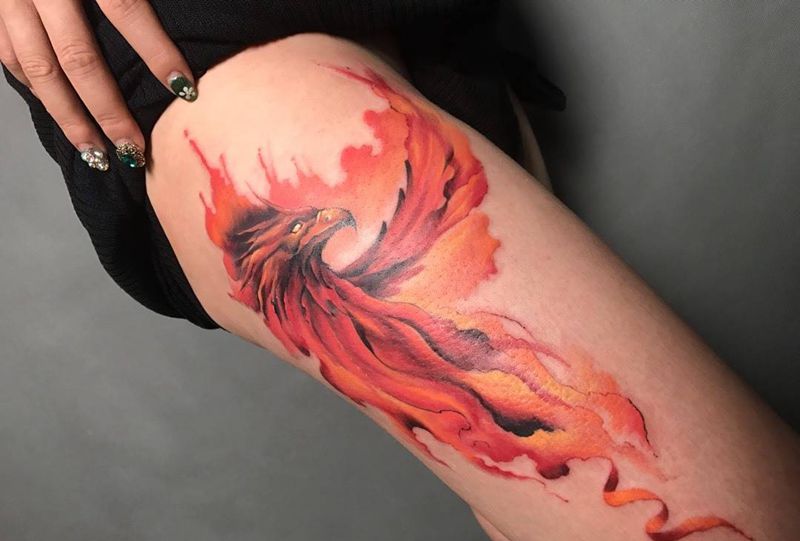 当前位置: 首页 >湖北省武汉市纹身店-纹艺刺刻纹身馆纹身图案>插画凤凰一枚纹身图片_成品腿部臀部欧美动物原创武汉纹艺刺刻纹申坤纹身图案