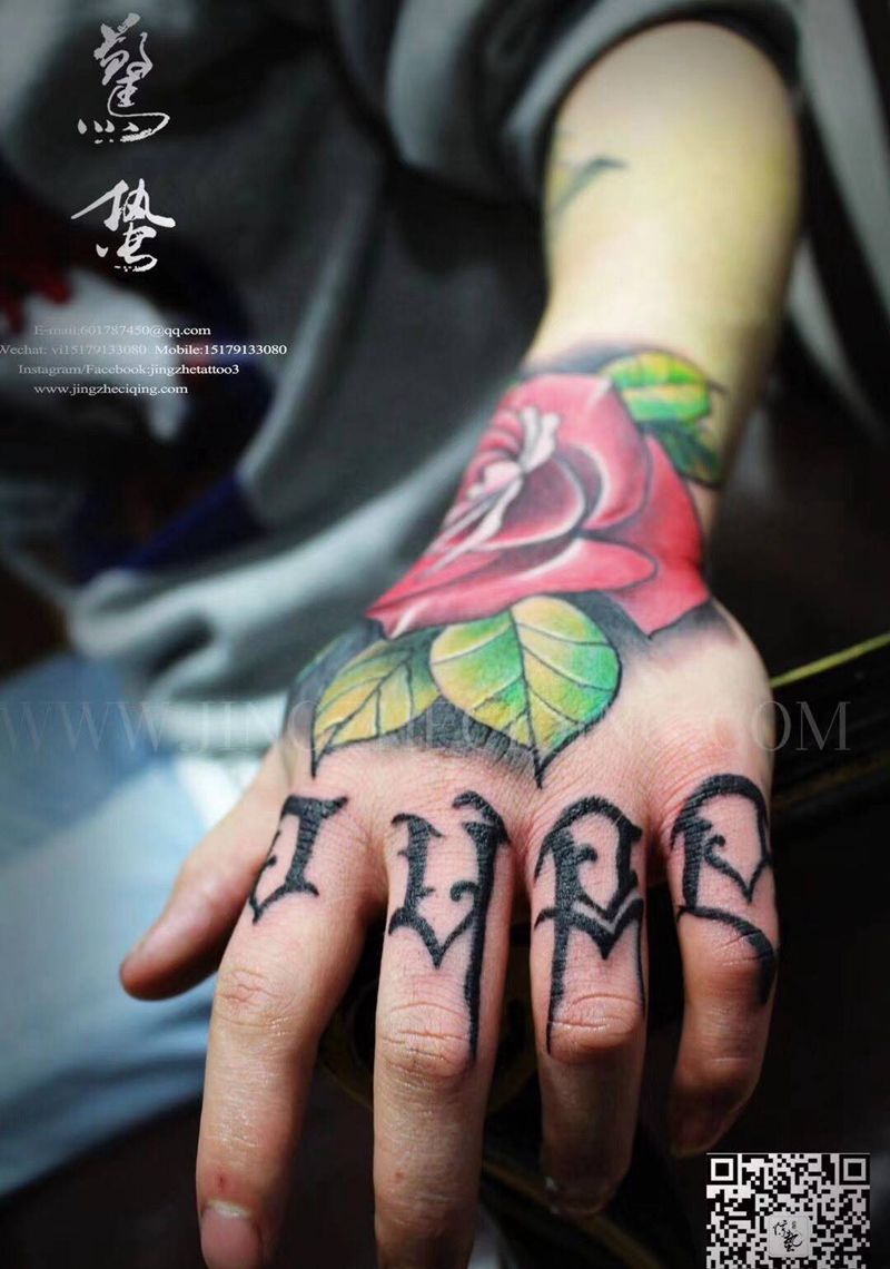 • 手背潮流时尚的玫瑰花眼睛纹身图案