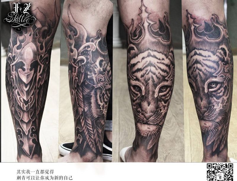 • T网红王老大花腿龙纹身图片_腿部新传统纹身图案