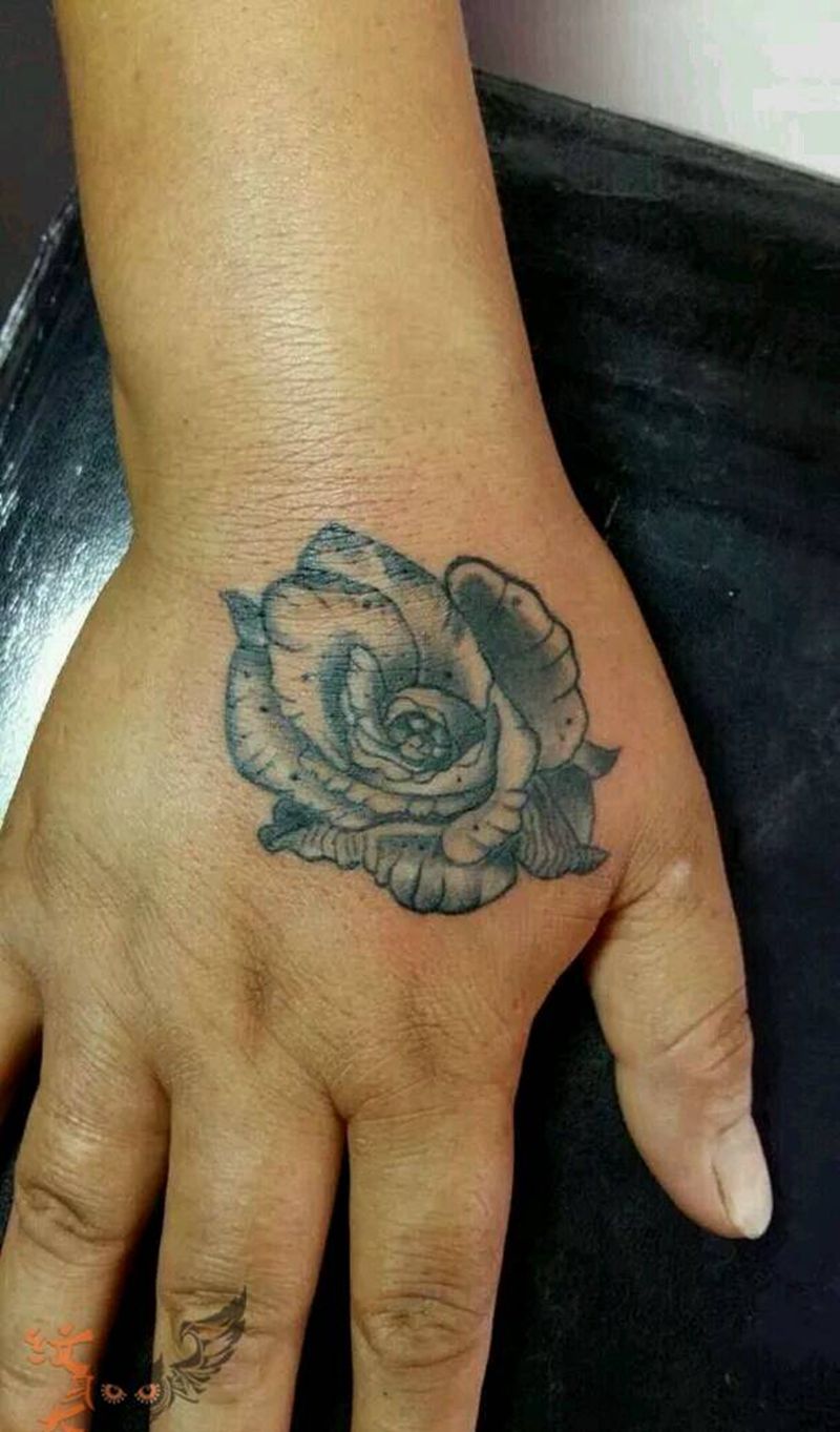• 手背潮流时尚的玫瑰花眼睛纹身图案