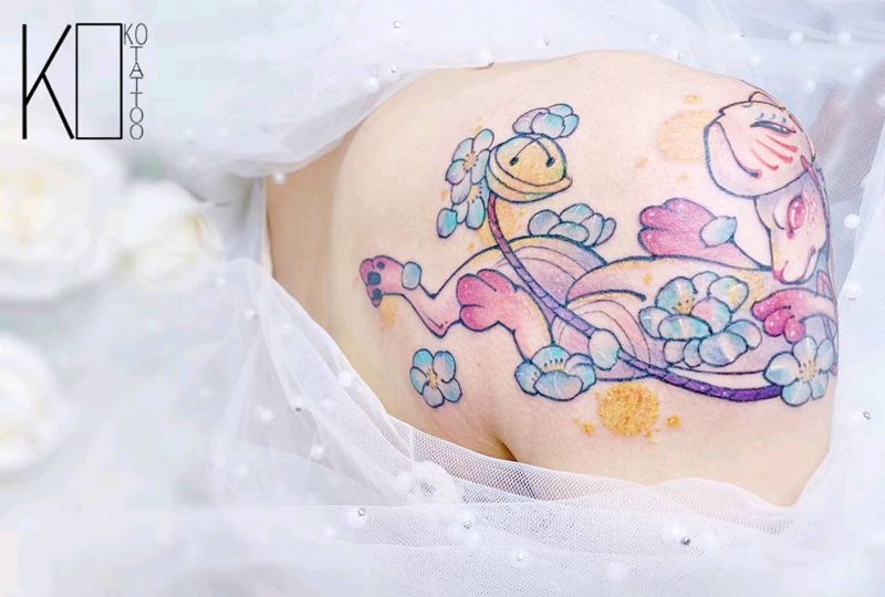 当前位置: 首页 >湖北省武汉市纹身店-KOKO TATTOO原创定制纹身店纹身图案>兔子纹身图片_肩部背部新传统水彩兔子日式风格武侠风纹身图案