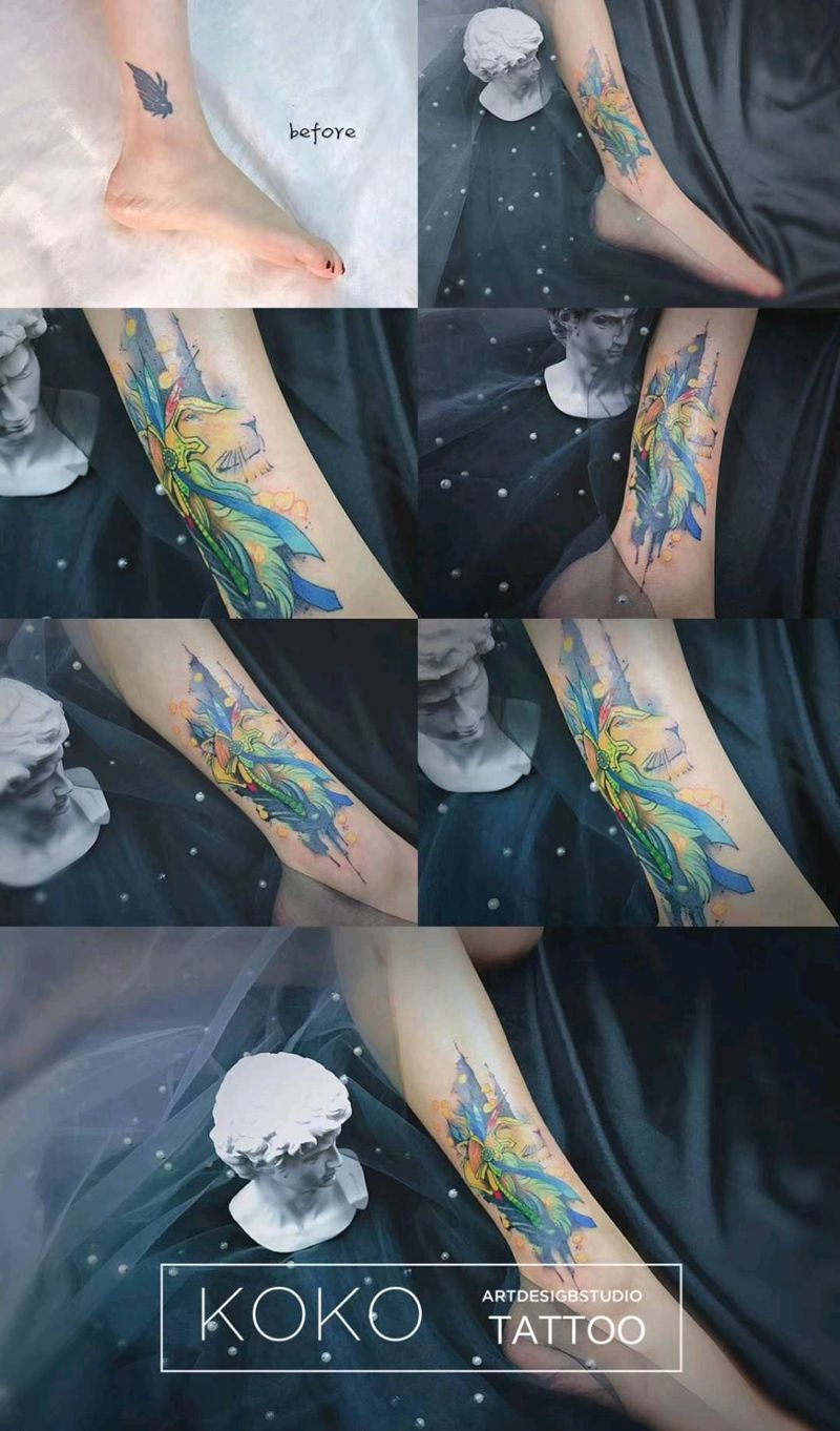 当前位置: 首页 >湖北省武汉市纹身店-KOKO TATTOO原创定制纹身店纹身图案>狮子座纹身图片_腿部水彩狮子水彩星座纹身图案