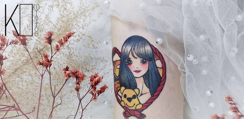 当前位置: 首页 >湖北省武汉市纹身店-KOKO TATTOO原创定制纹身店纹身图案>肖像定制纹身图片_手臂New School肖像小熊school纹身图案