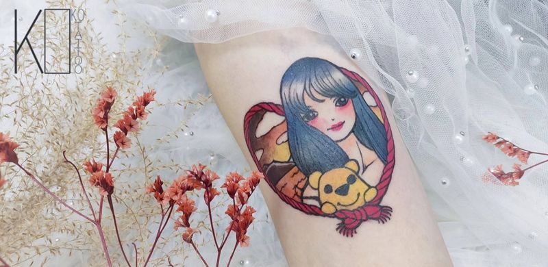 当前位置: 首页 >湖北省武汉市纹身店-KOKO TATTOO原创定制纹身店纹身图案>肖像定制纹身图片_手臂New School肖像小熊school纹身图案